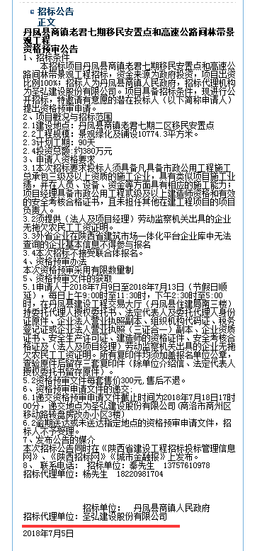 我司承接丹凤县商镇老君七期移民安置点和高速公路间林带景观工程招标